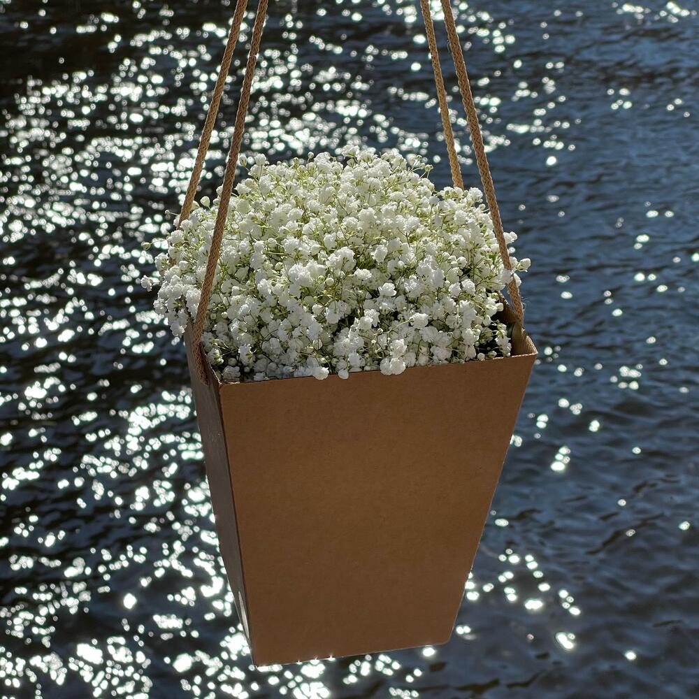 “Сиреневый туман” – композиция из гипсофилы в шляпной коробке