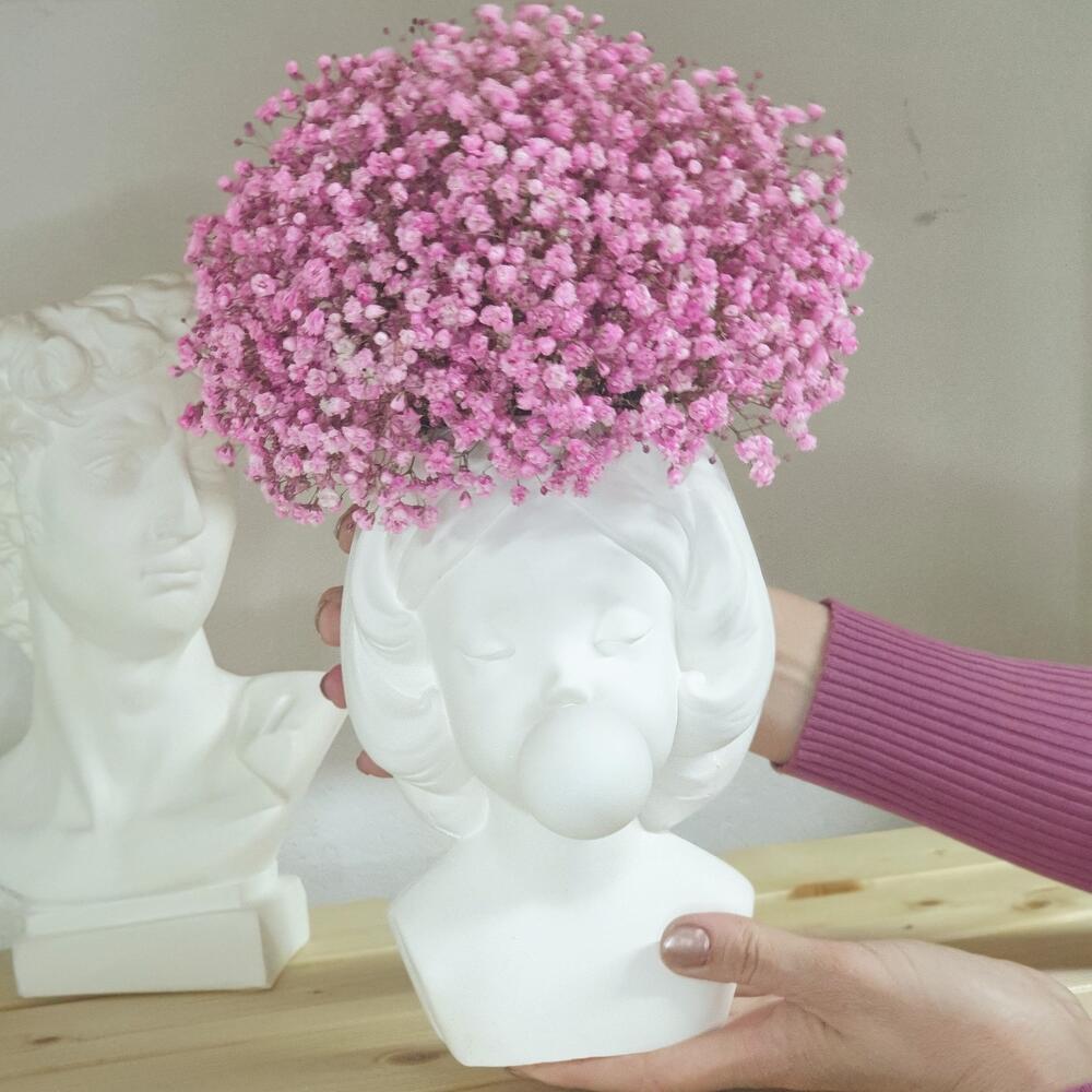 Оазис флористический – 1 шт.Гипсофила розовая – 7 шт.кашпо из гипса. ручная работа – 1 шт.