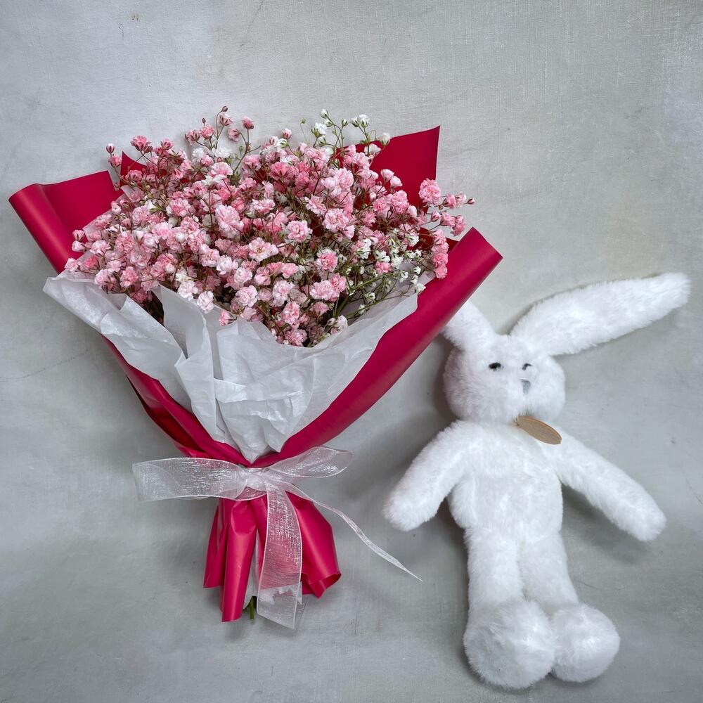 Гипсофила – 3 шт.Упаковка – 1 шт.игрушка зайчонок lapkin – 1 шт.Пакет крафт – 1 шт.