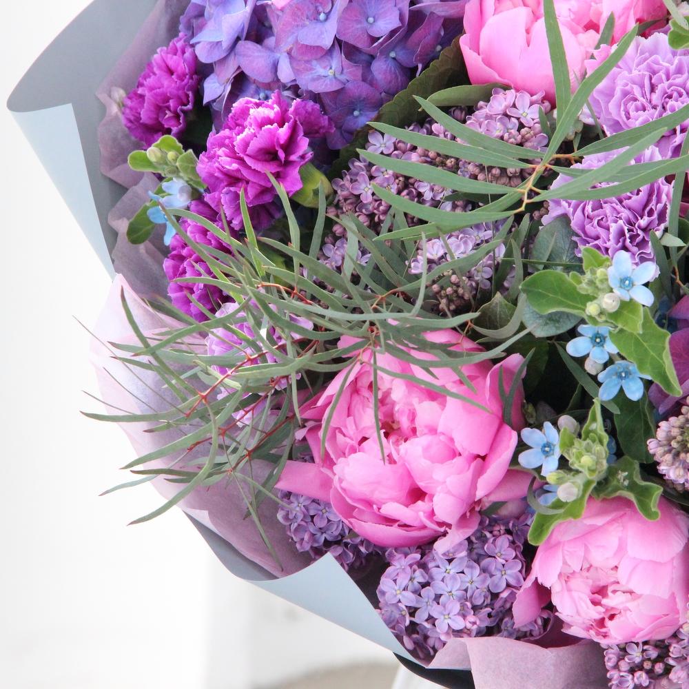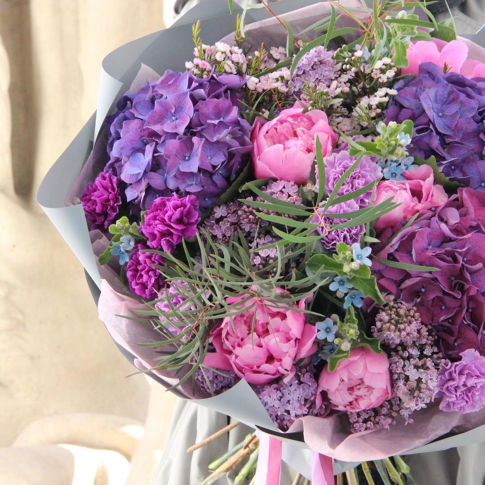 Лиловый поцелуй - Гортензии, пионы и восковой мирт