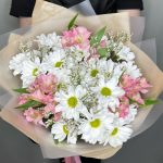 Букет ромашки, розовые альстромерии и лимониум. WISTERIA FLOWERS
