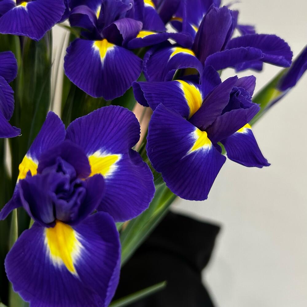 Букет из 19 фиолетовых ирисов в ленте