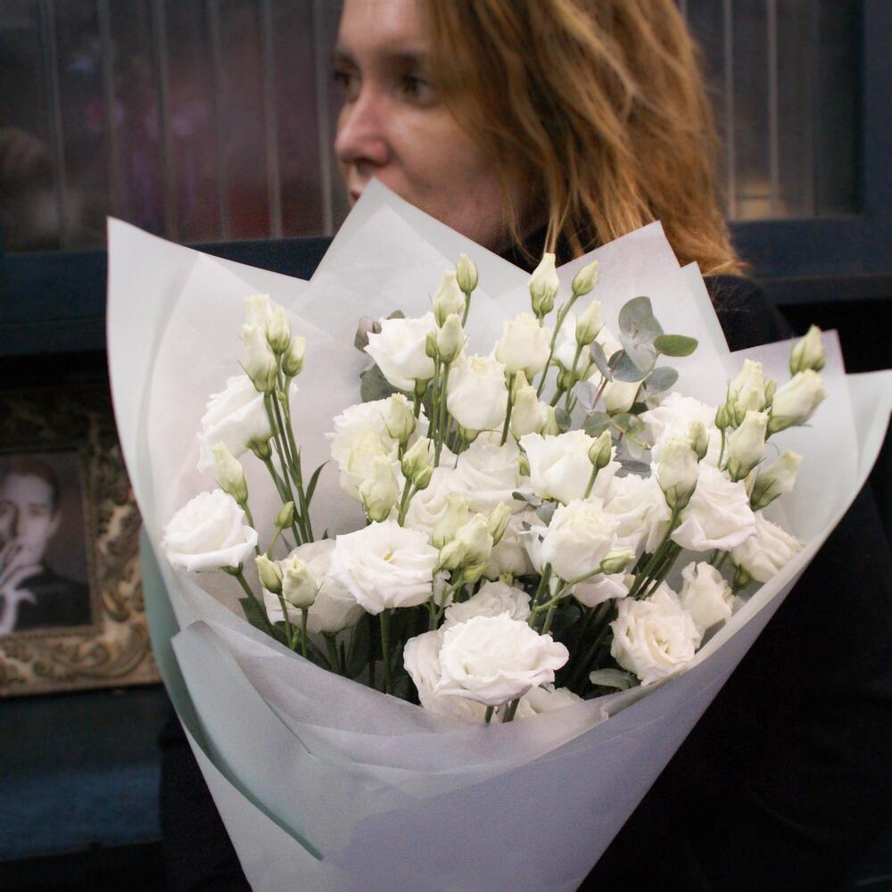 Букет из 13 эустом с эвкалиптом