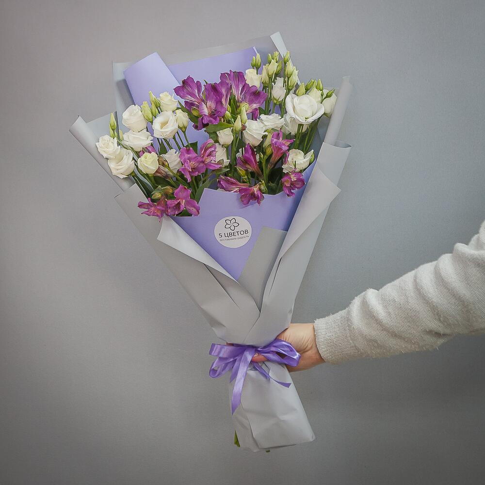 Букет из 5 эустом и 3 альстромерий