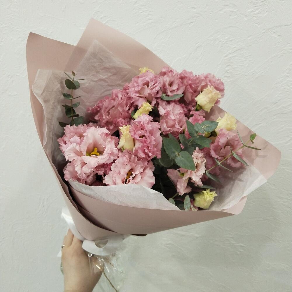Эустома – 5 шт.Эвкалипт – 1 шт.Упаковка – 1 шт.