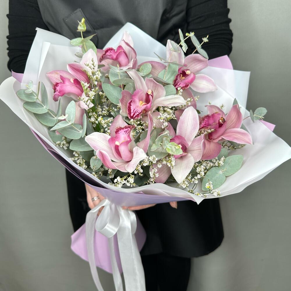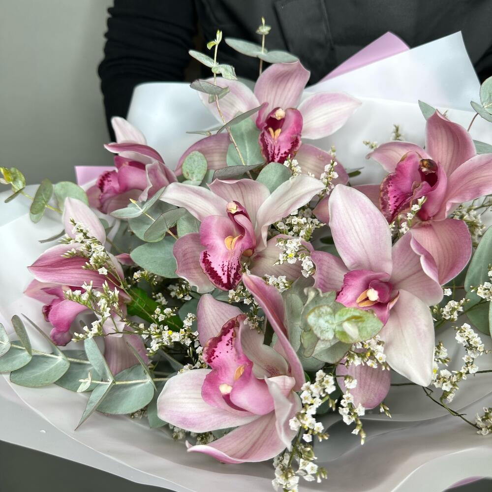 Букет орхидеи, лимониум и ароматный эвкалипт. WISTERIA FLOWERS