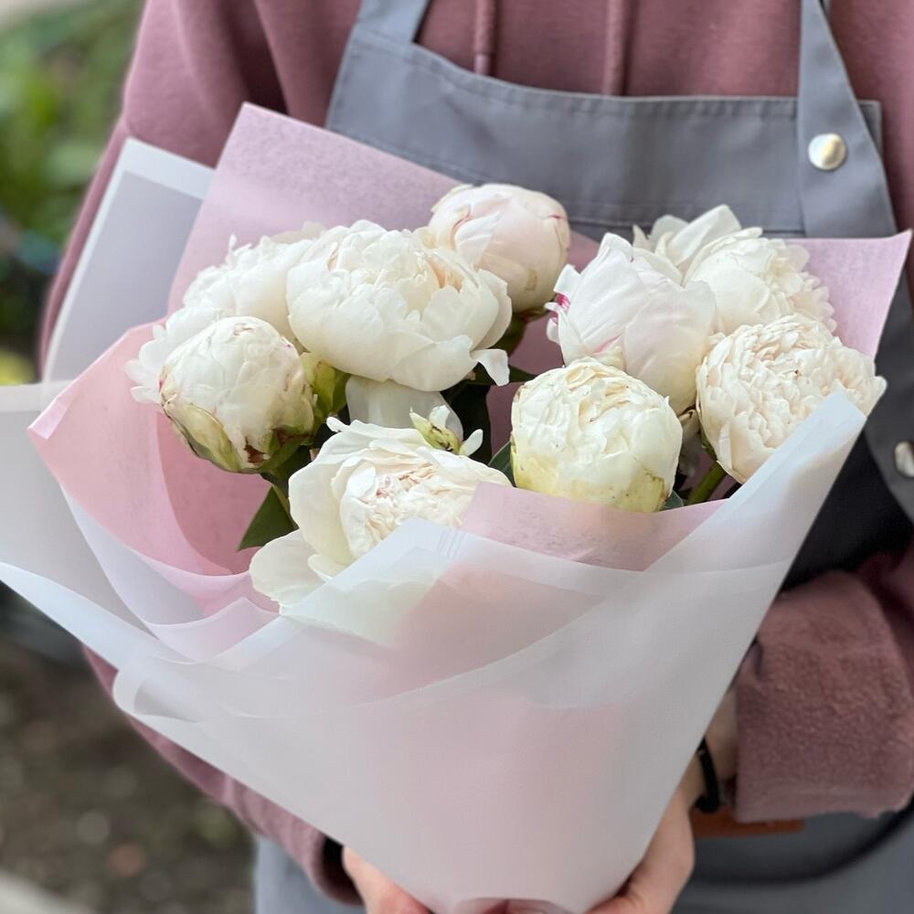 пион белый премиум – 9 шт.Упаковка дизайнерская – 1 шт.