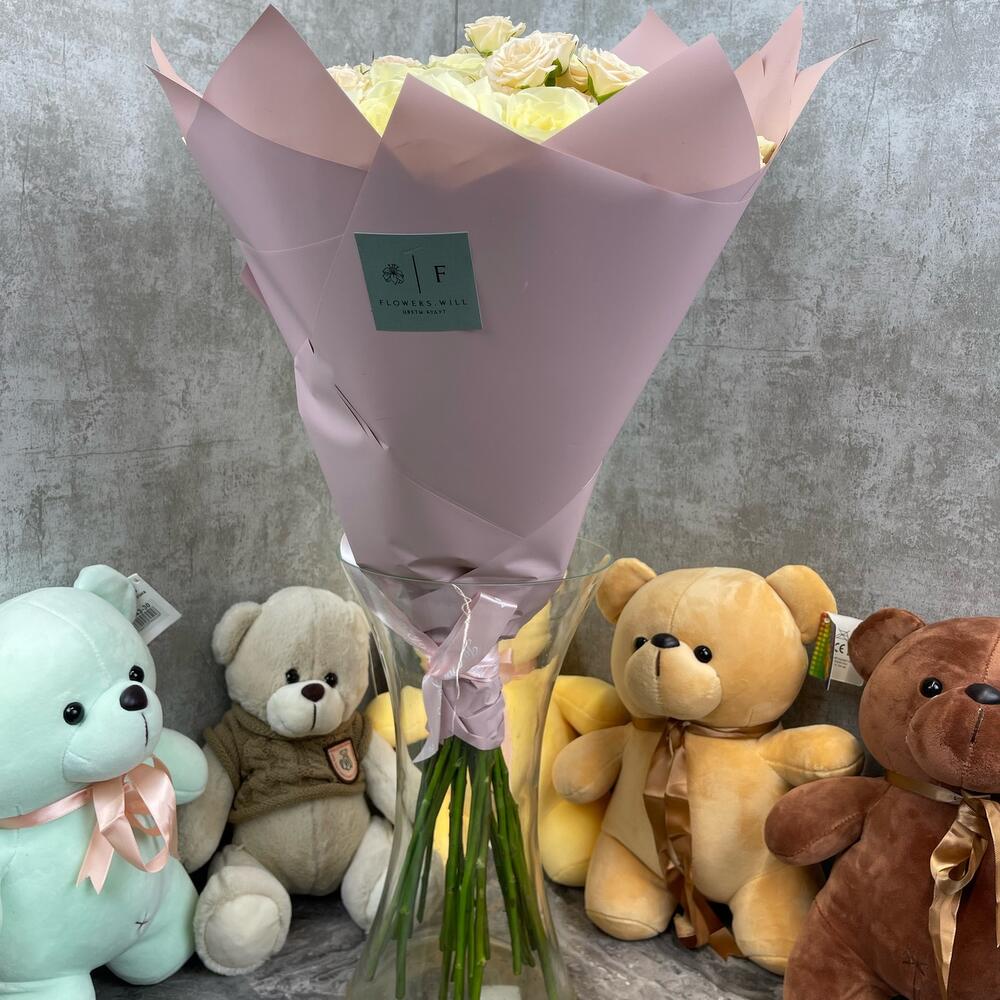 одноголовые розы – 25 шт.Кустовая роза – 6 шт.