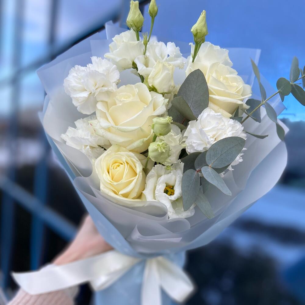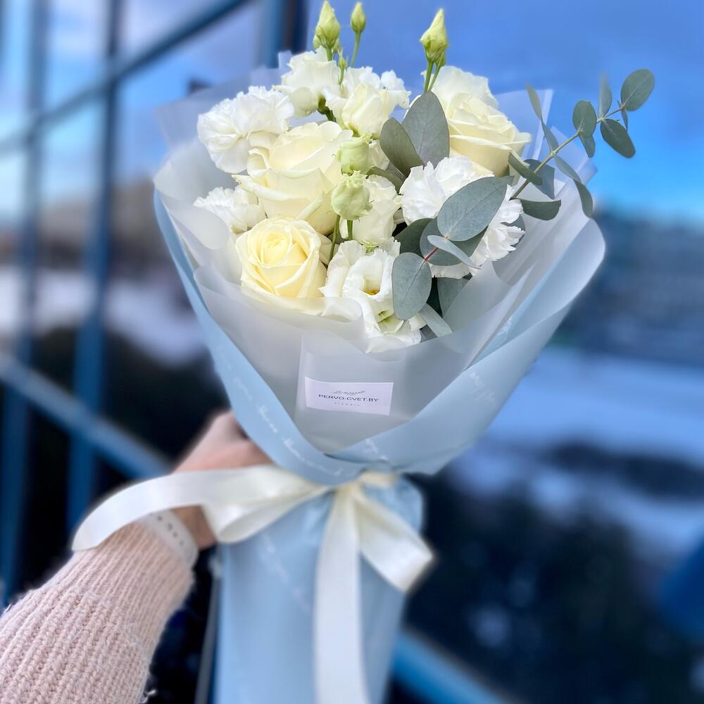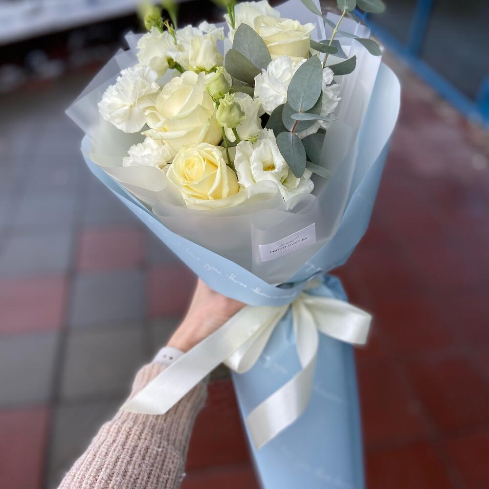 Гвоздики, Лизиантусы, Розы, Тюльпаны