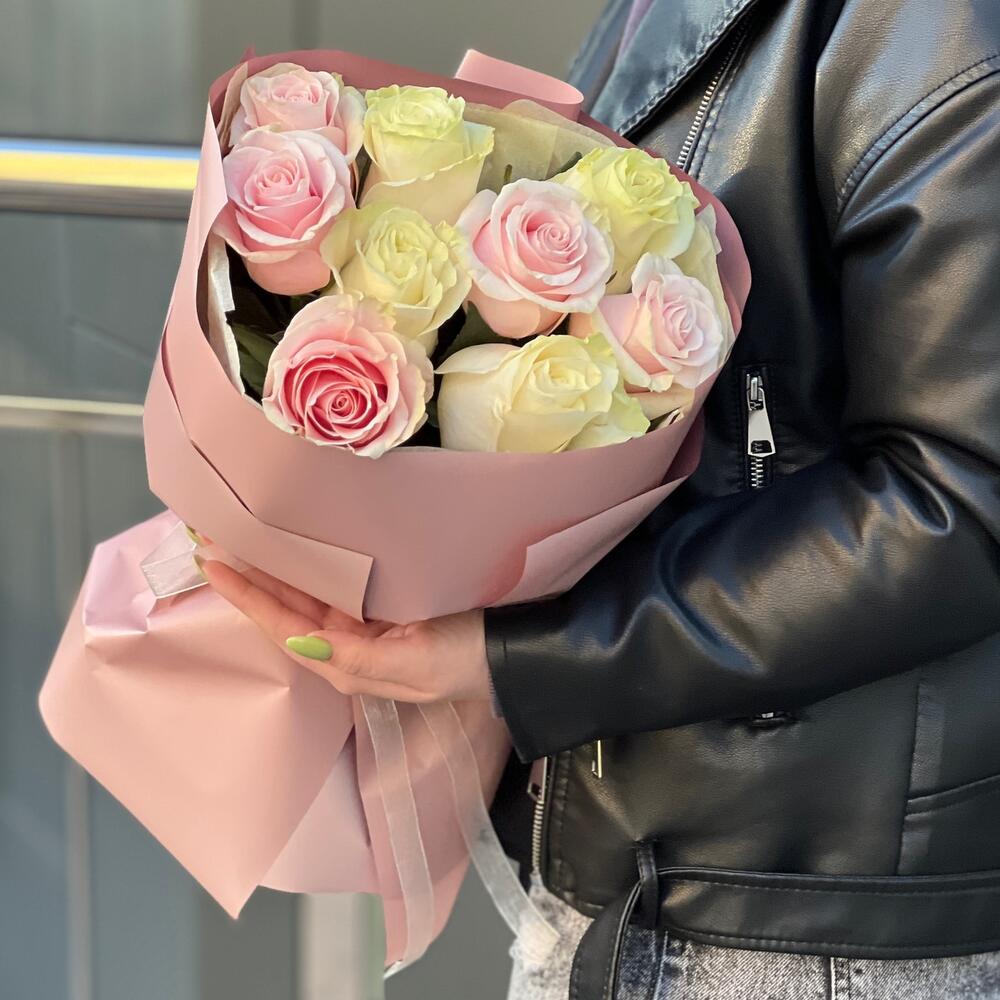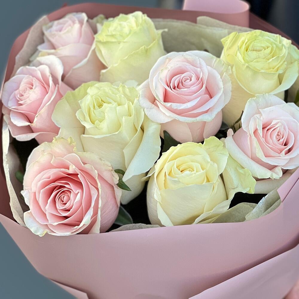 Букет из 9 белых и розовых роз