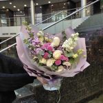 Букет из маттиолы и эустомы с добавлением ароматного эвкалипта