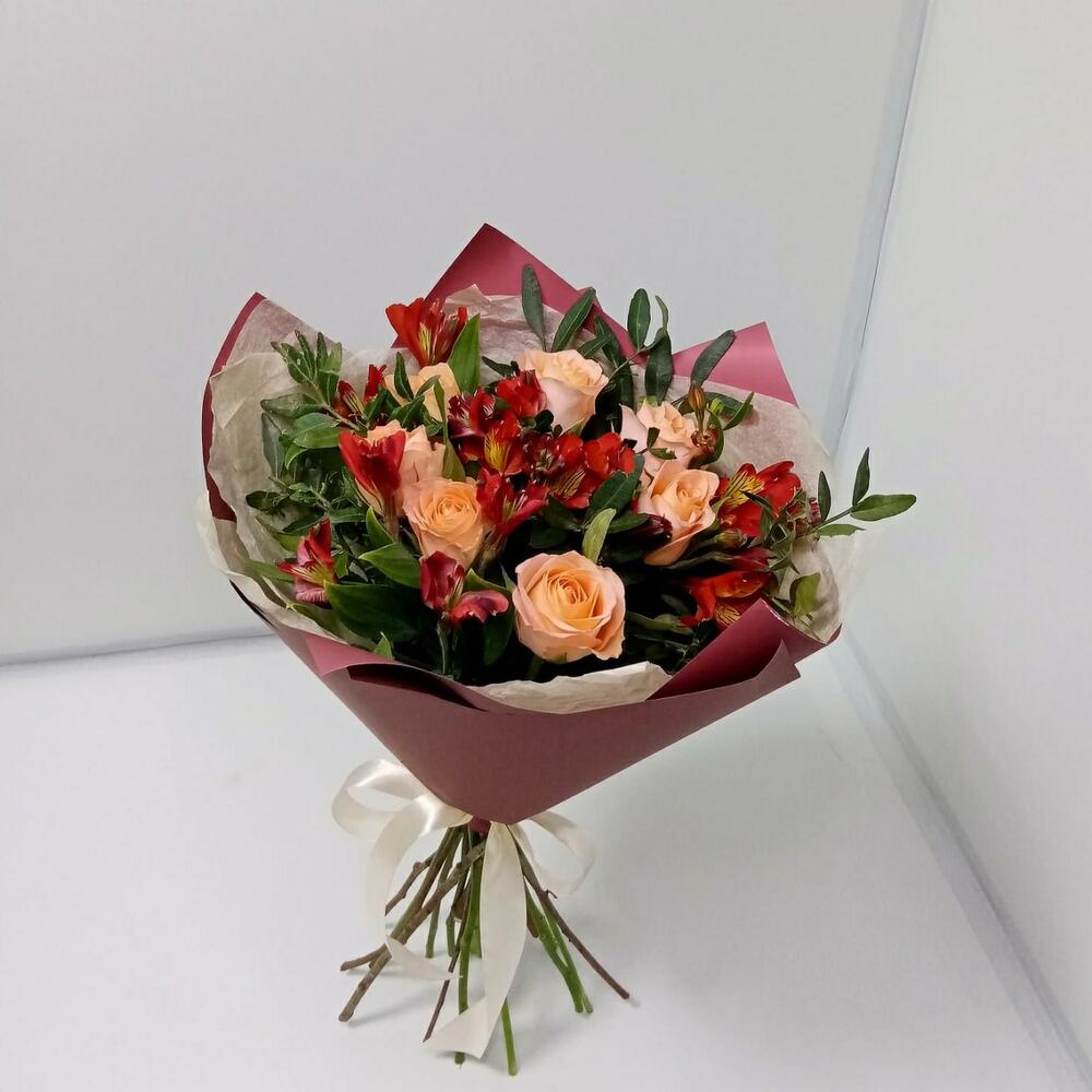 Букет из роз и Альстромерии
