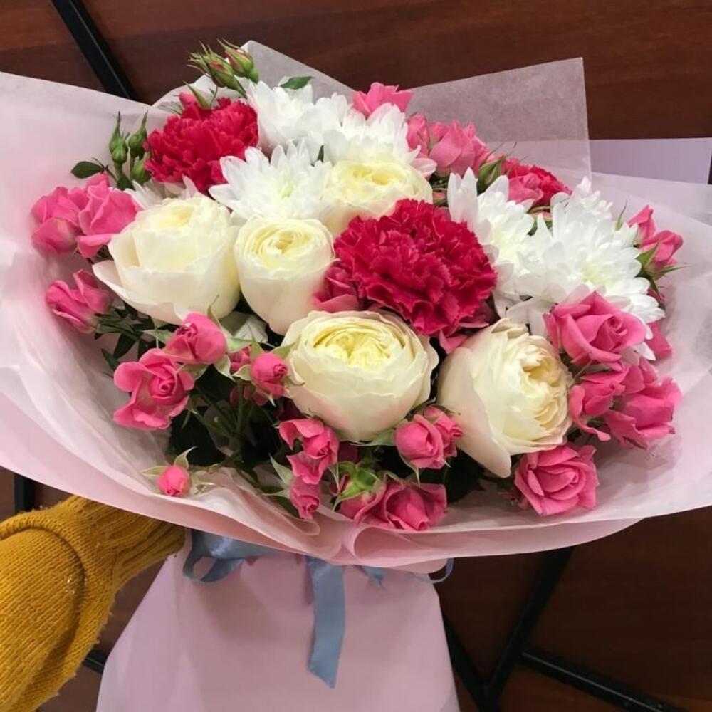 Альстромерии, Кустовые розы, Лизиантусы, Пионовидные розы, Розы, Ромашки