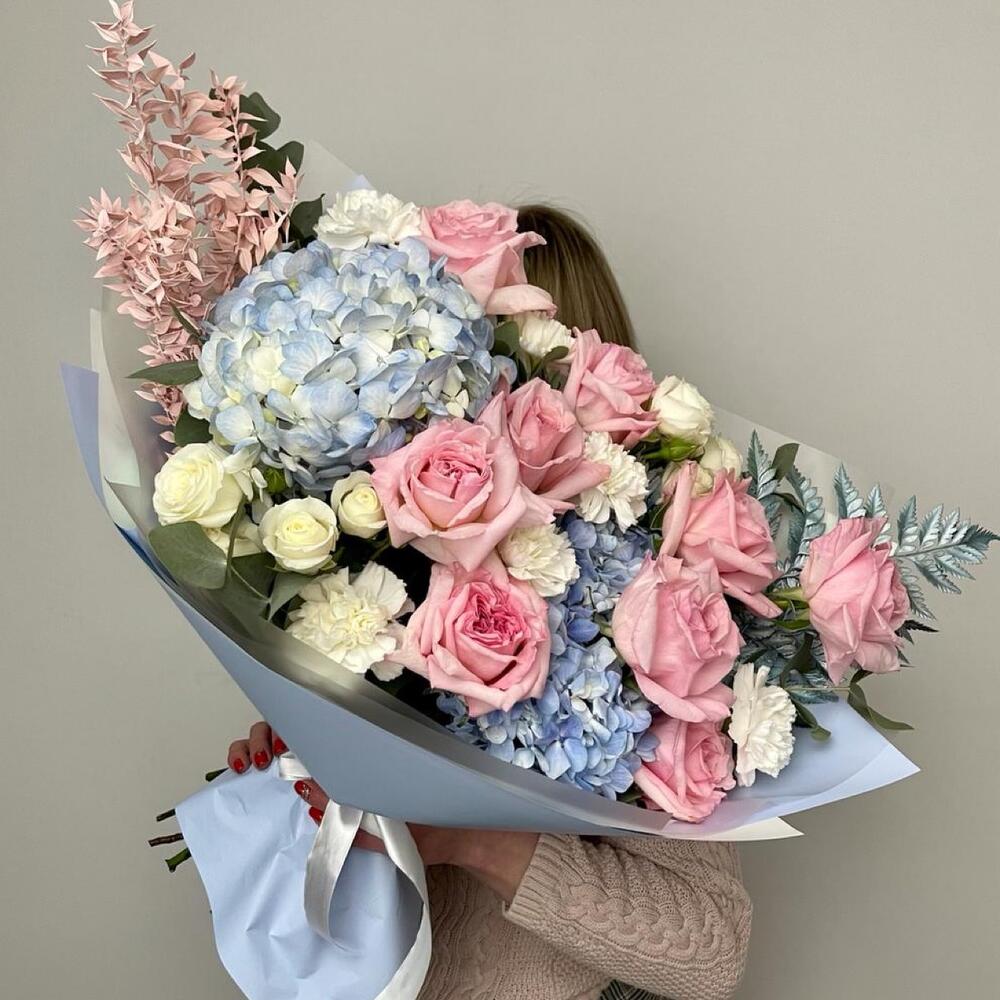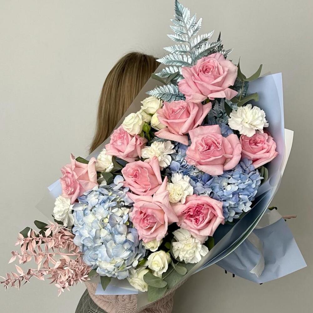 Букет с розами и гортензией