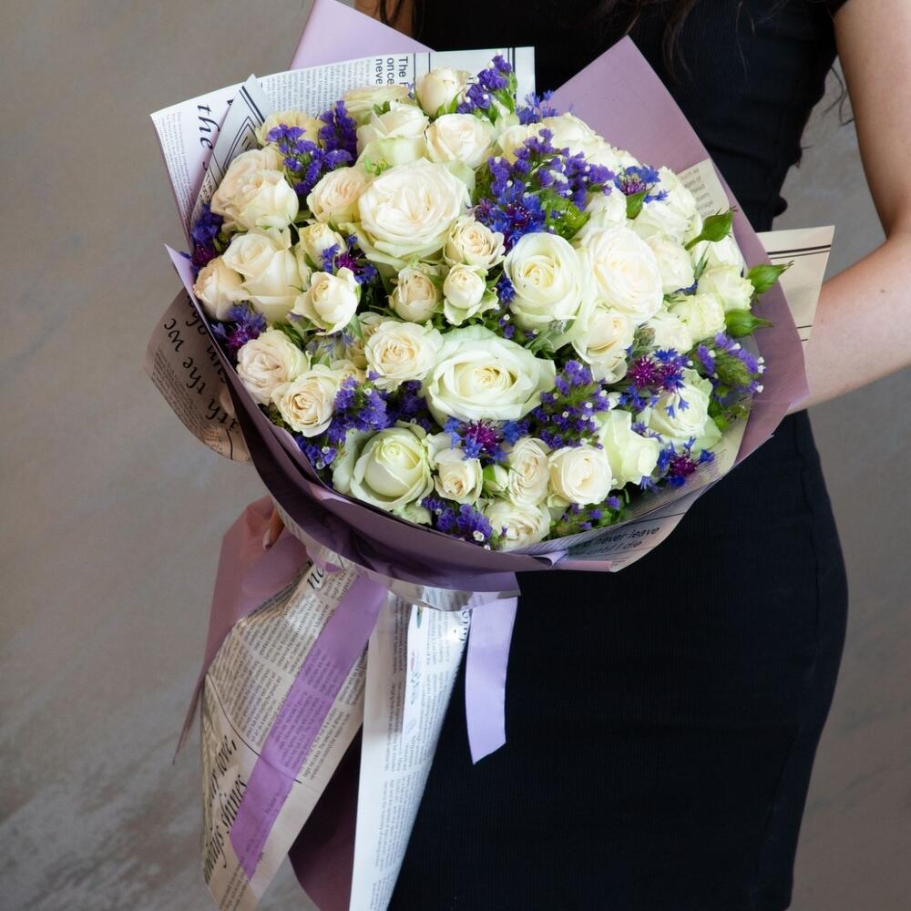 Гвоздики, Кустовые розы, Лизиантусы, Пионовидные розы, Розы