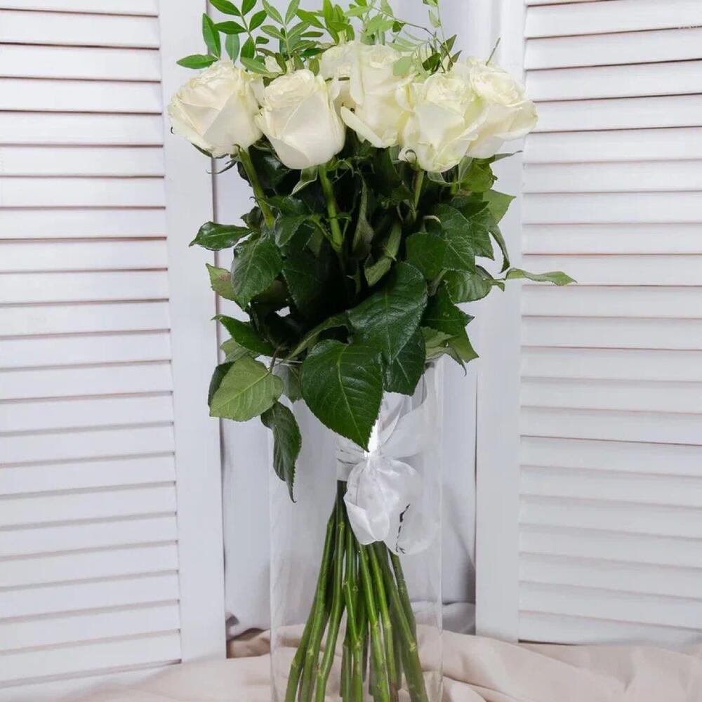 роза mondial 60 см – 19 шт.Фисташка – 2 шт.Пленка прозрачная – 1 шт.Лента атласная – 1 шт.