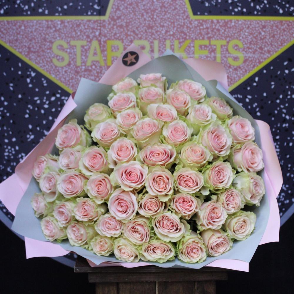 роза эквадор фруттето – 51 шт.Пленка дизайнерская – 5 шт.Лента атласная – 2 шт.