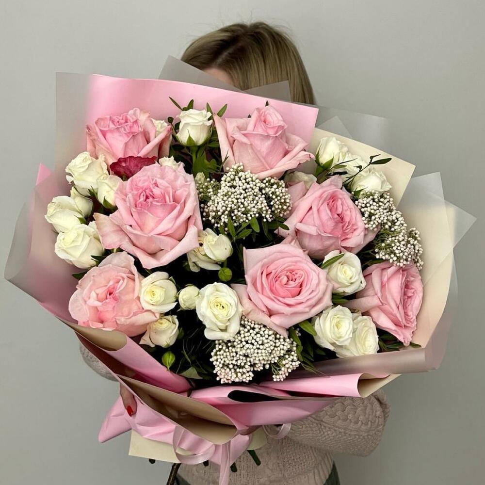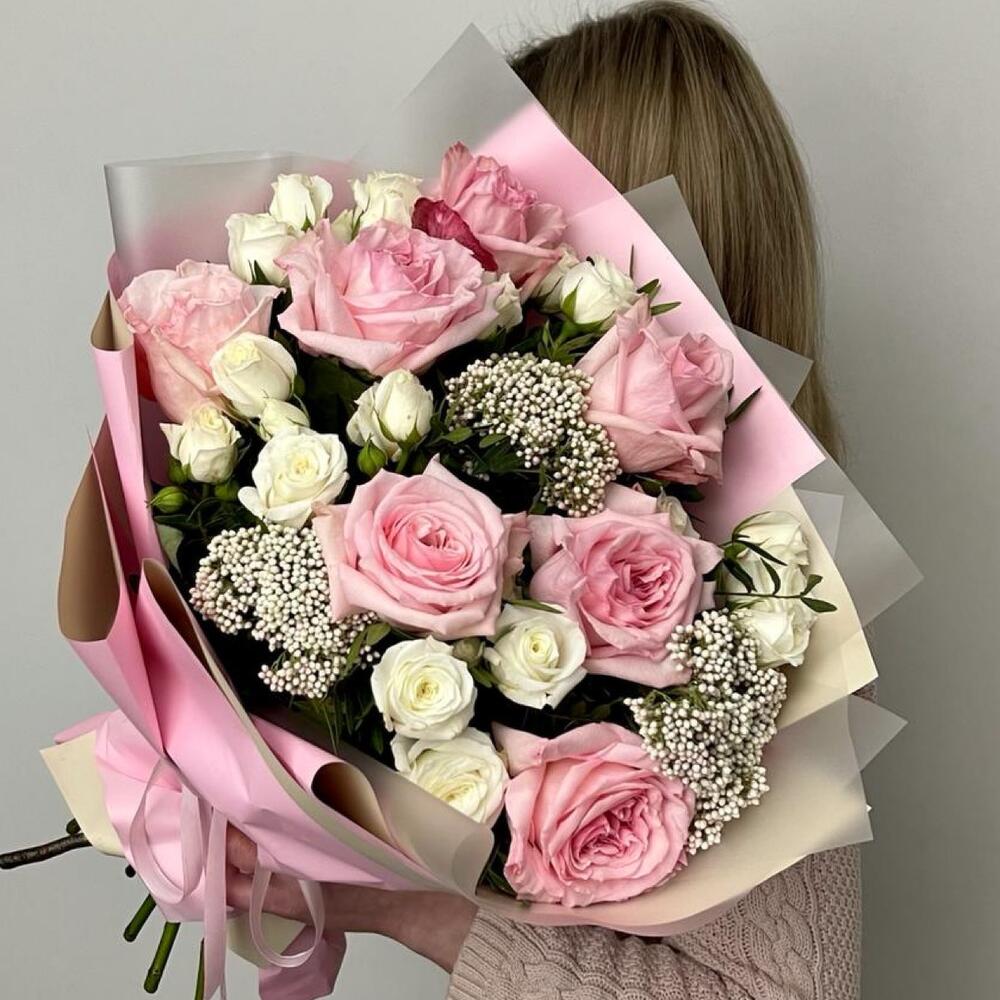 Альстромерии, Кустовые розы, Лизиантусы, Пионовидные розы, Розы, Ромашки