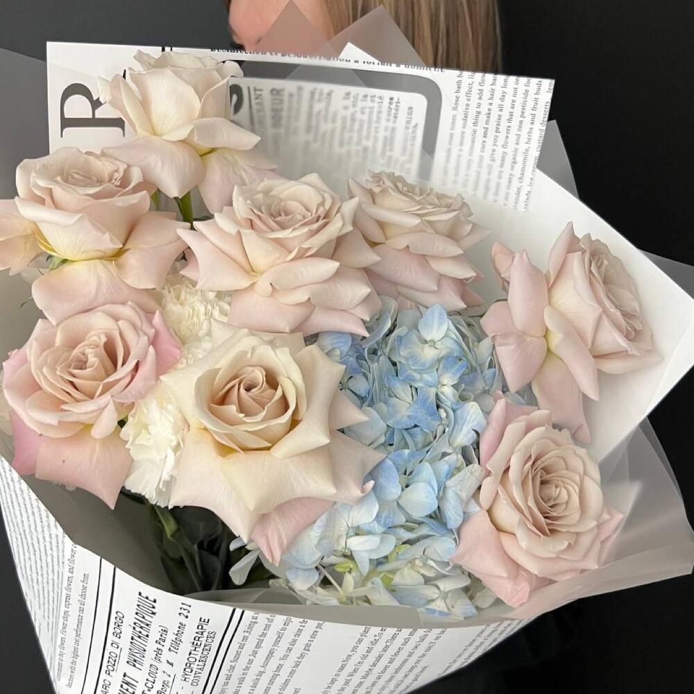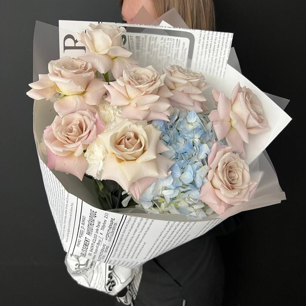 Гвоздики, Кустовые розы, Лизиантусы, Пионовидные розы, Розы