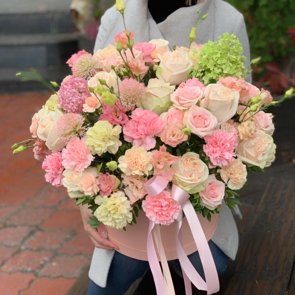 Категорий: Гвоздики, Кустовые розы, Лизиантусы, Пионовидные розы, Розы